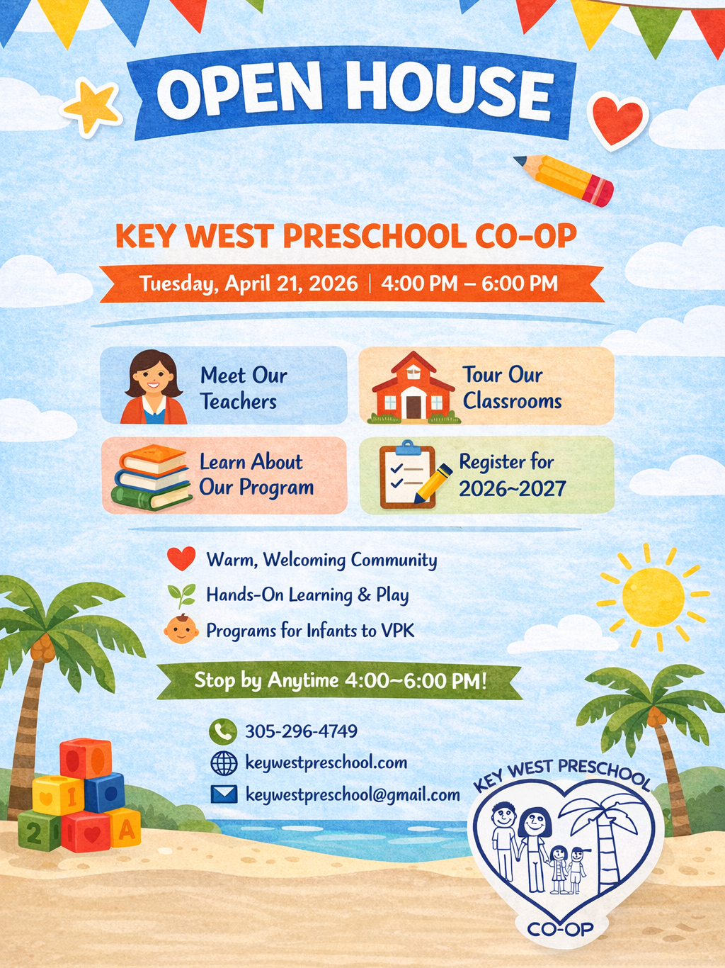 Since 1988, Key West Preschool Co-op has provided a warm, play-based, and community-driven early education experience for families in the Florida Keys. As a not-for-profit cooperative preschool, we are supported by over 35 engaged families who help shape the everyday life of our school. Here, parents aren’t just observers—they’re active participants in their child’s earliest educational journey.