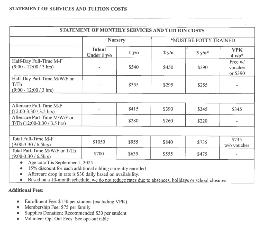 We accept FLDOE VPK vouchers.